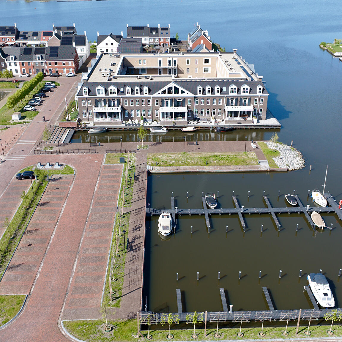 Het Arsenaal omvat 8 gezinswoningen en 21 appartementen met parkeerplaatsen op het binnenterrein en een haven voor de deur.