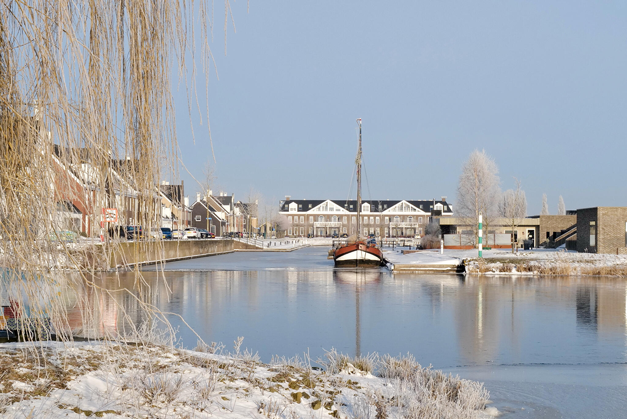 Het eerste appartementencomplex in Blauwestad; het Arsenaal. Het is de laatste fase van Geveke bouw langs het meer, dat begon met een aantal houten pop-up gevels.