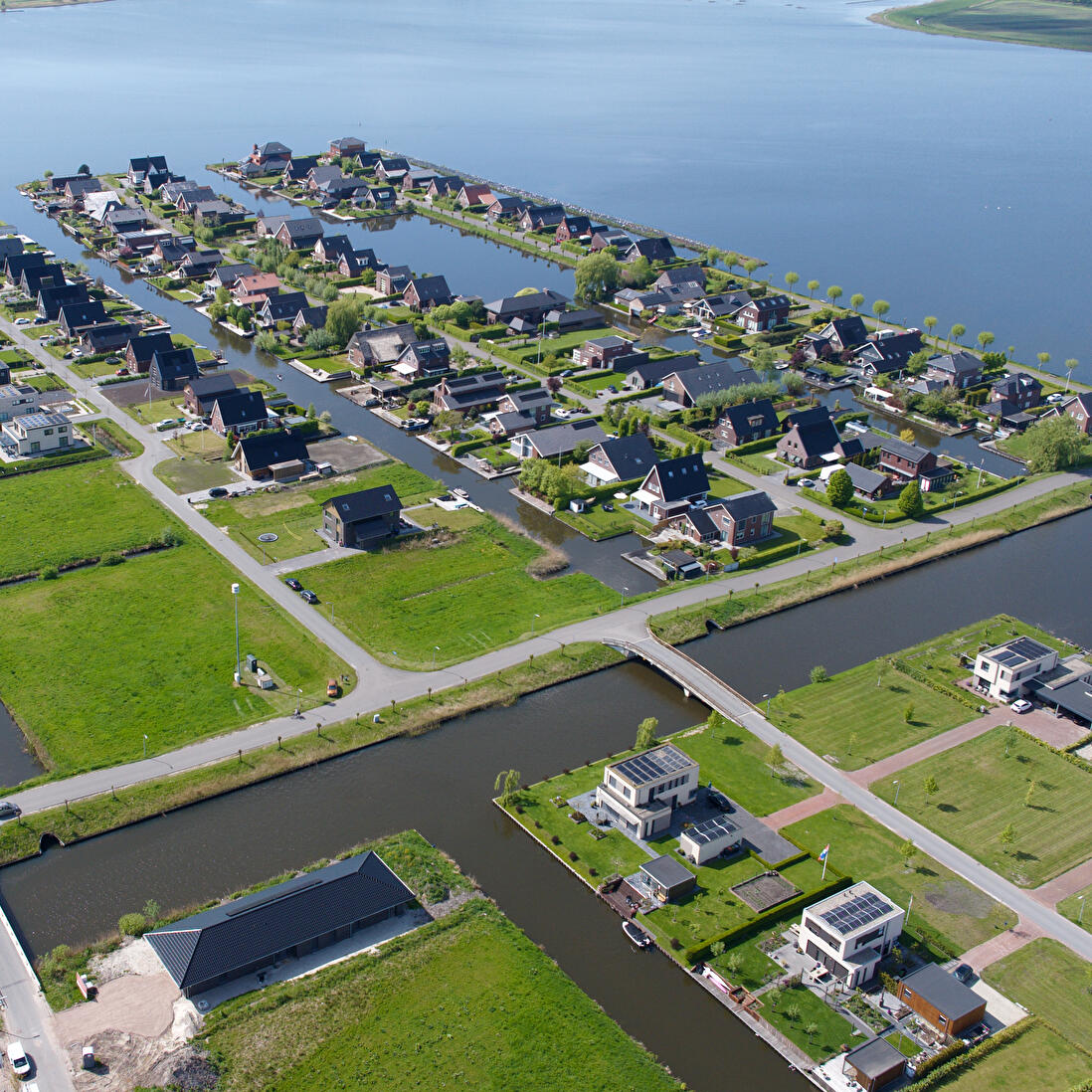 Allemaal onder architectuur gebouwde ruime woningen die grenzen aan het water. De bewoners aan de Meerkoet hebben een vrij uitzicht over het meer.